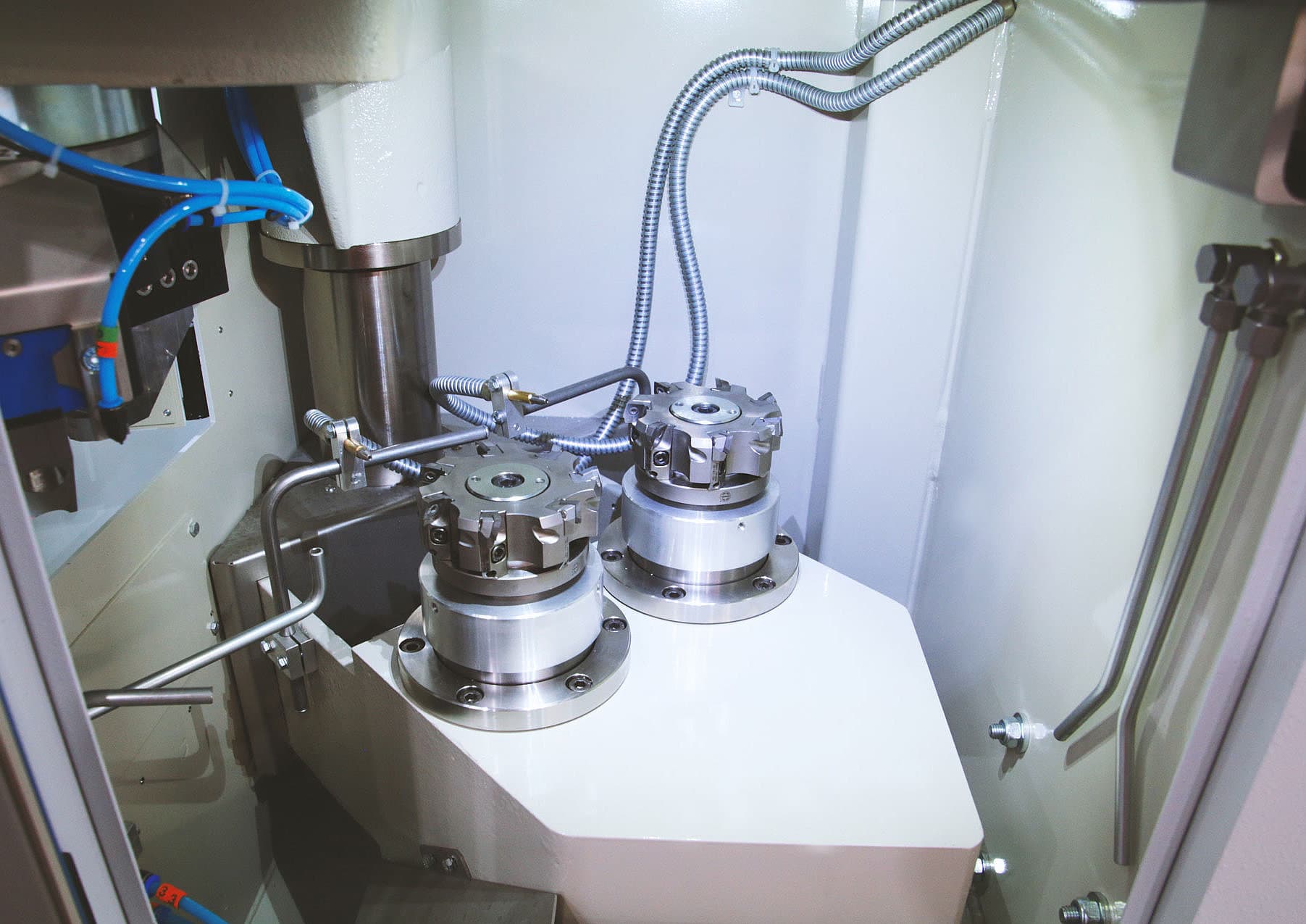 Двата фрезова шпиндела, налични в HN-FF, могат да бъдат конфигурирани по различни начини. Често първият шпиндел е оборудван с фрезова глава, осигуряваща висока скорост на отстраняване на материал по време на така нареченото „грубо фрезоване“ и по този начин позволява експозицията на представителния слой проба. Втората фрезова глава след това извършва така нареченото „фино фрезоване“, което осигурява перфектна повърхност за последващия анализ.